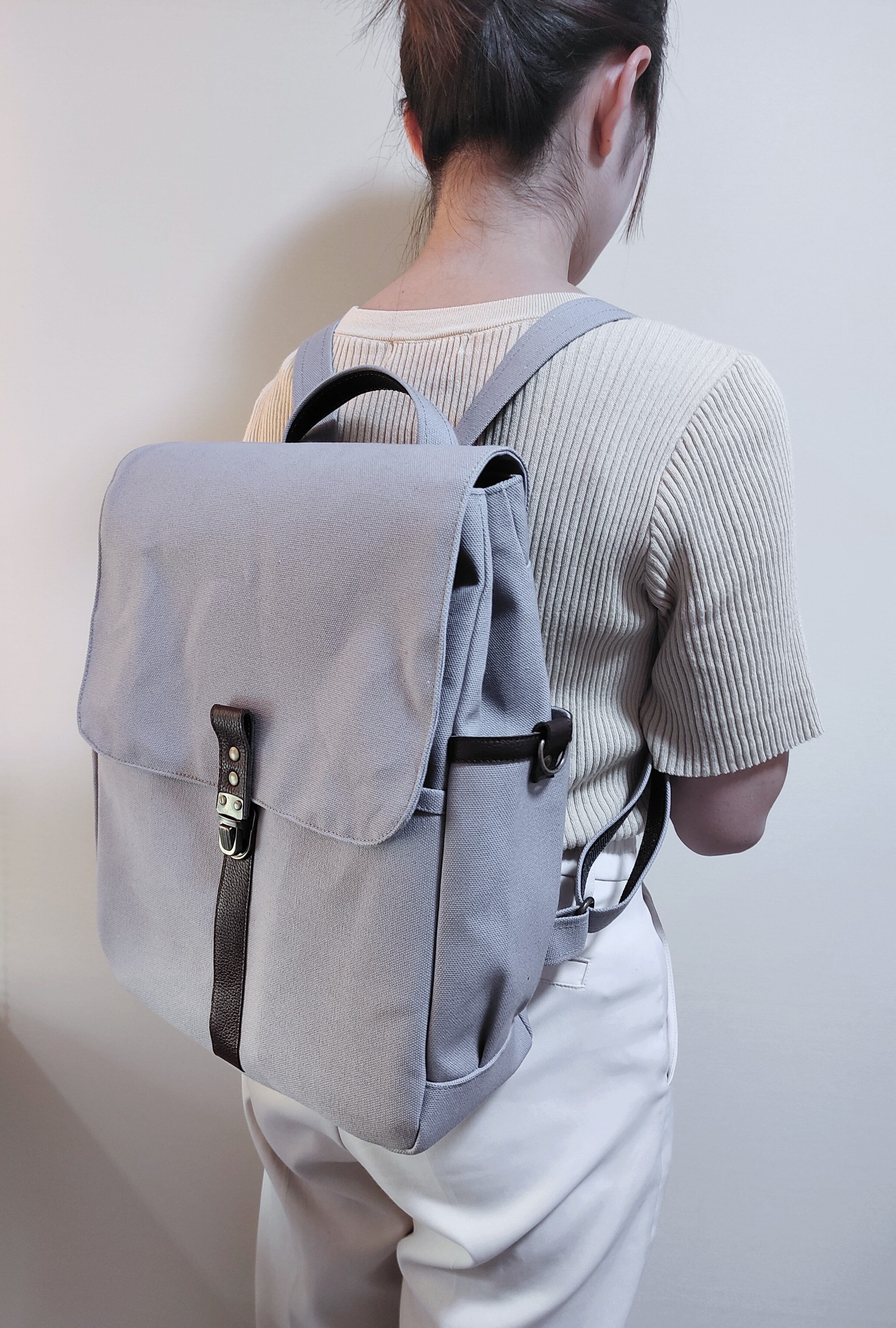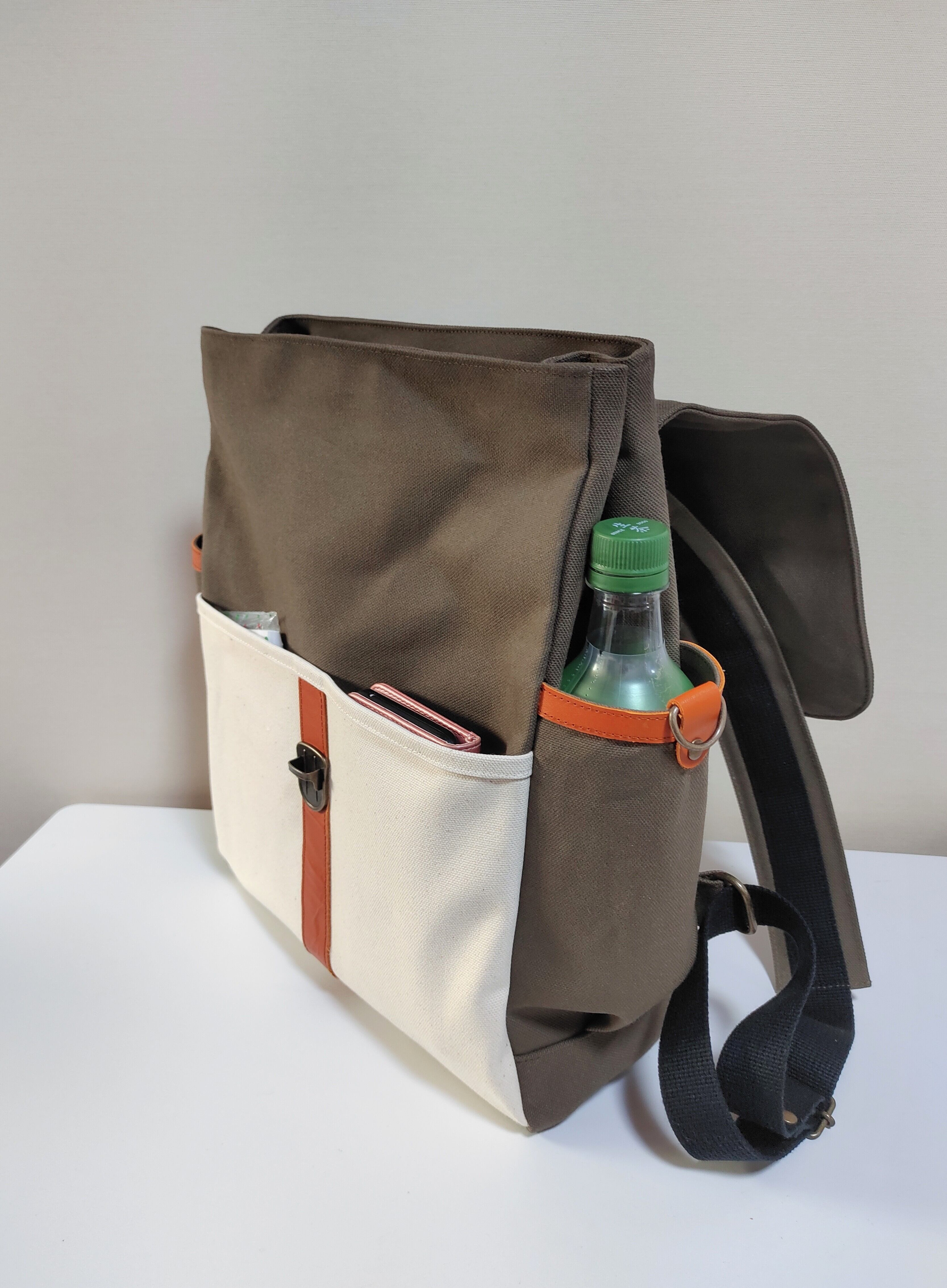 おしゃれなカーキ×キナリ帆布リュックです(^-^)