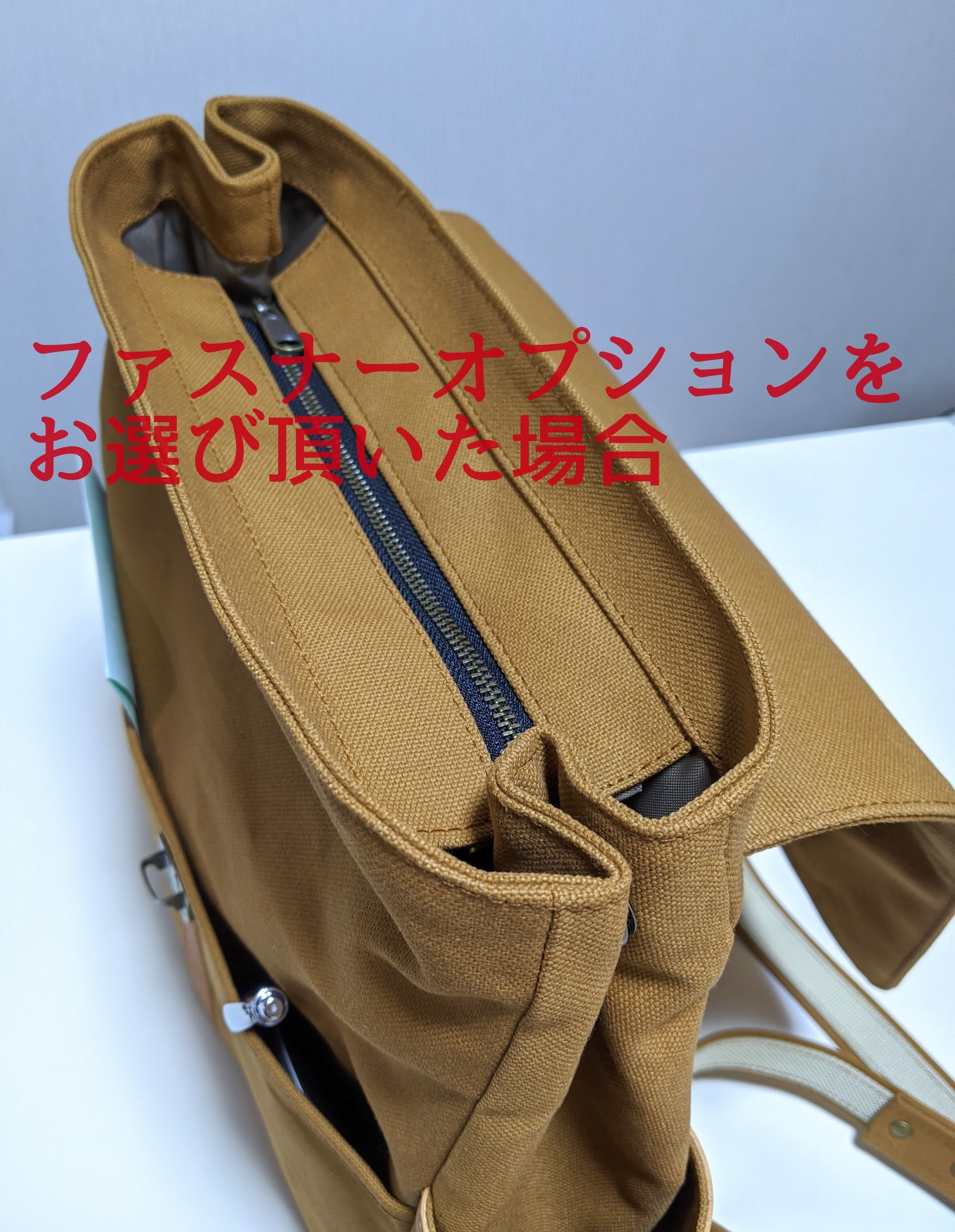 帆布シンプルリュック通勤通学A4対応(カーキ×キナリ)