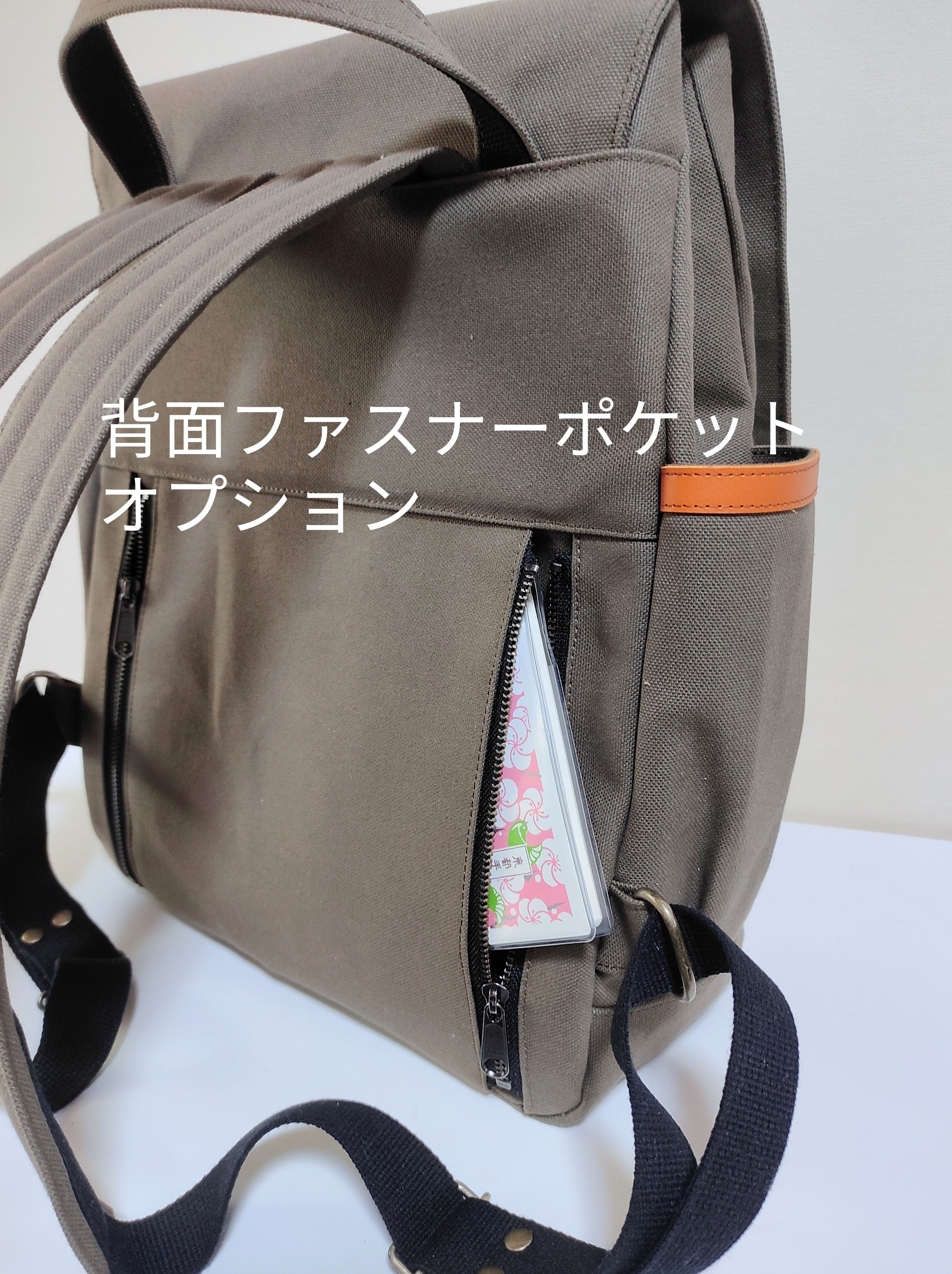 おしゃれなカーキ帆布リュックです(^-^)